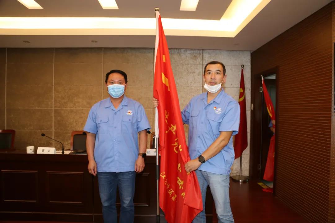 ▲江蘇捷誠(chéng)黨委為一支部黨員突擊隊(duì)授旗