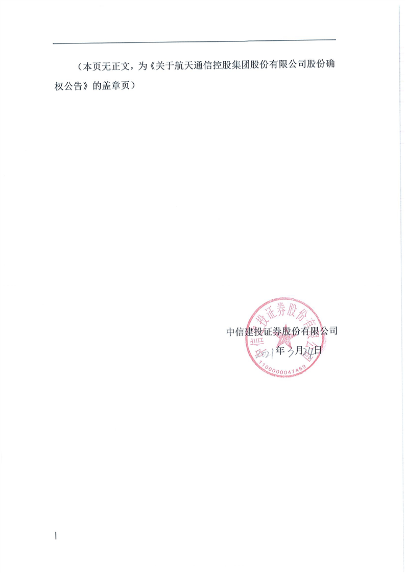 關于航天通信控股集團股份有限公司股份確權公告