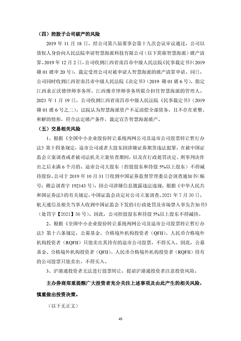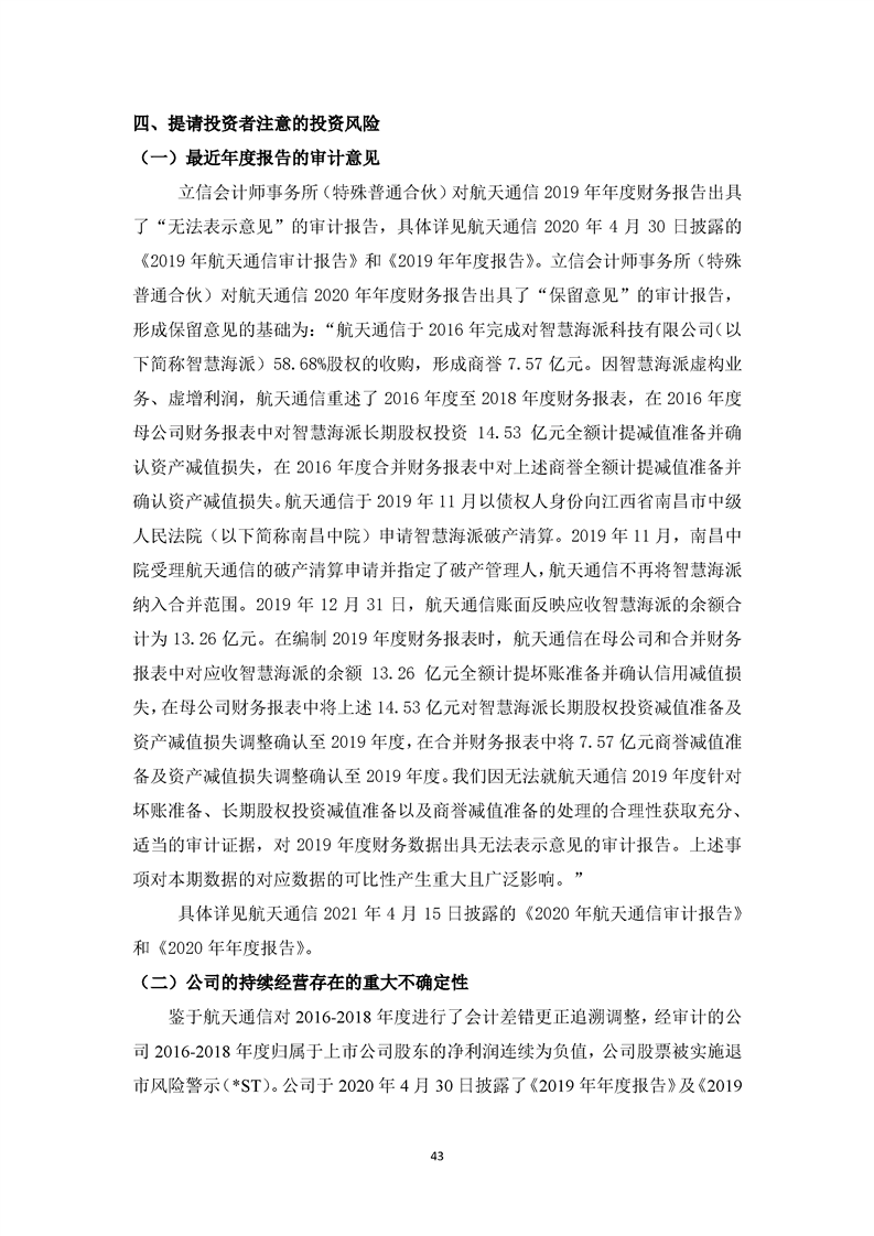 關(guān)于航天通信控股集團(tuán)股份有限公司投資風(fēng)險(xiǎn)分析的報(bào)告